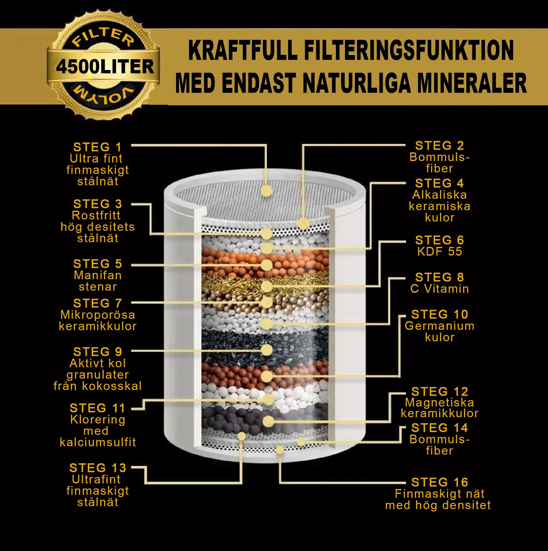 8-stegs keramiskt kolfilter med Antikalkfunktion